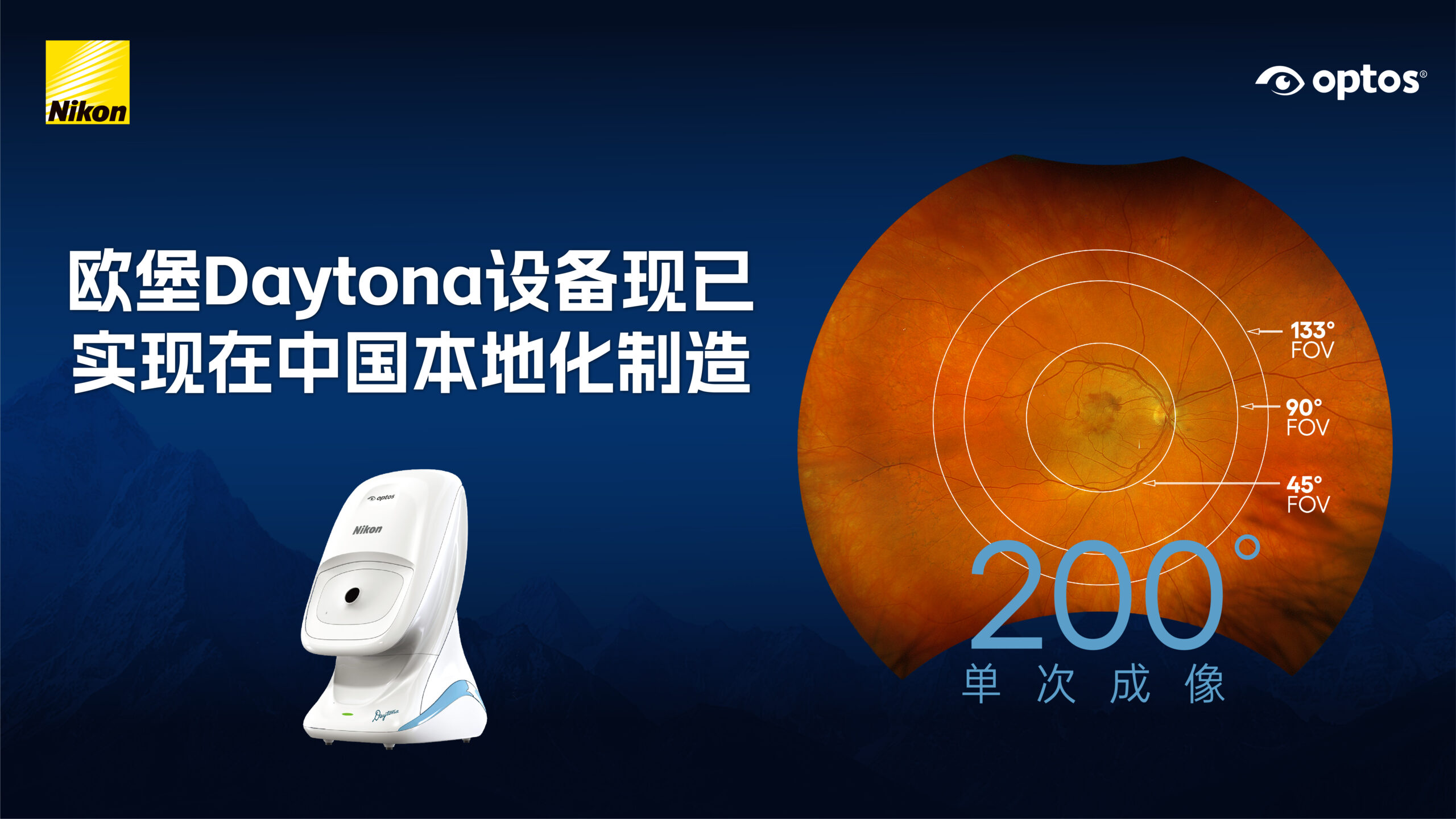 尼康宣布欧堡Daytona设备已实现在中国本地化制造。国产欧堡Daytona为眼科医疗从业者提供覆盖约82%视网膜范围的超广角眼底影像(UWF),单次扫描仅需0.4秒,即可获得清晰的200°超广角眼底影像。